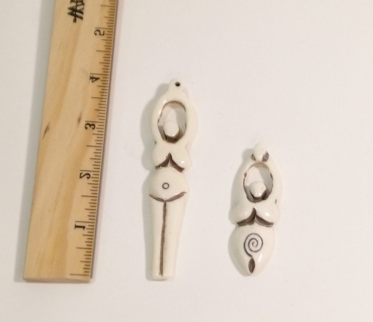 Hand-carved bone goddess pendants crafted from natural bone and horn. Available in two sizes, each piece features detailed carving and organic variation.
